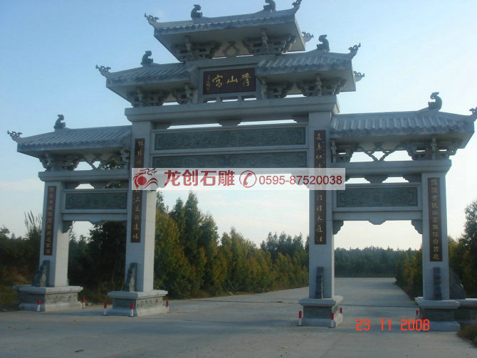門樓牌坊雕刻的樣式,門樓牌坊設(shè)計(jì)時(shí)沒(méi)有樓的構(gòu)造,既沒(méi)有斗拱和屋頂,而門樓牌坊設(shè)計(jì)時(shí)有斗拱和屋頂,它有更大的烘托氣氛。但是由于它們都是我國(guó)古代用于表彰、紀(jì)念、裝飾、標(biāo)識(shí)的一種建筑物,而且多用于主要街道起點(diǎn)、交叉口、橋梁,古代多用于宮苑、寺觀、祠堂、衙署等處,景觀性很強(qiáng),起到點(diǎn)題、框景、倩景等效果,長(zhǎng)期以來(lái)老百姓對(duì)“坊”、“樓”的概念不清,所以到最后兩者成為一個(gè)互通的稱謂了。牌坊石雕、石雕牌坊、牌坊,現(xiàn)在很多石雕廠為了利益把石雕之本已經(jīng)拋棄了,他們建造的門樓牌坊都是為了應(yīng)時(shí)之景,雕刻工藝粗糙,已經(jīng)徒有其表,門樓牌坊原本的神采和韻味乃至意義都不復(fù)存在。