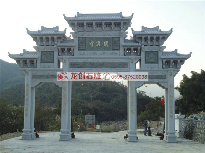 門樓牌坊是石牌樓中的一種,門樓牌坊與石牌樓相比,門樓牌坊在雕刻的時(shí)候沒(méi)有石牌樓那樣的復(fù)雜化,主要是因?yàn)槭品粵](méi)有石牌樓上面的那些斗拱和樓子。門樓牌坊是一種具有紀(jì)念性的獨(dú)特的建筑物,從門樓牌坊的建造意圖來(lái)說(shuō),可以分為三類:一類為標(biāo)志性;二類為陵園牌坊;三類為紀(jì)念性的,根據(jù)想表達(dá)的意圖來(lái)建筑不同的牌坊。在現(xiàn)代,門樓牌坊擺放一般用來(lái)表彰與紀(jì)念人物或表示美觀的建筑物,多建在市街、鄉(xiāng)村、家祠、寺院、道觀、景區(qū)、學(xué)校等處。石雕牌樓,石牌坊