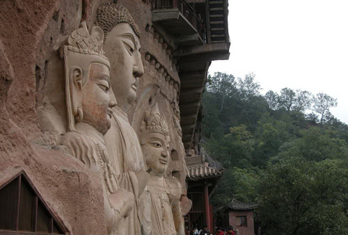 麥積山的塑像有兩大明顯的特點(diǎn):強(qiáng)烈的民族意識和世俗化的趨向。除早期作品外,從北魏塑像開始,差不多所有的佛像都是俯首下視的體態(tài),都有和藹可親的面容,雖是天堂的神,卻象世俗的人,成為人們美好愿望的化身。從塑像的體形和服飾看,也逐漸在擺脫外來藝術(shù)的影響,體現(xiàn)出漢民族的特點(diǎn)。