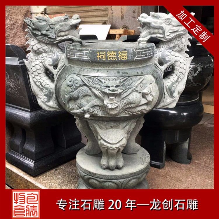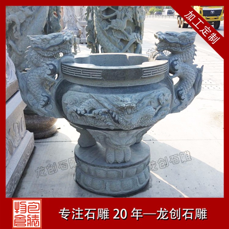 大型的石雕香爐,并不是一整塊石頭制作出來的,而是類似與石燈、石塔一樣,是由多個(gè)不同的石雕香爐部件,共同組合堆疊起來的。相比石燈、石塔不同的是,石雕香爐的主體部分是必須要掏空的。在保證石雕香爐主體運(yùn)輸,并且能夠正常使用的情況下,其香爐挖得越深越好。