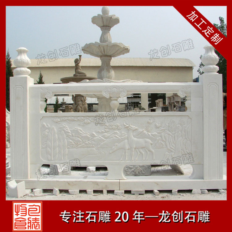 2、漢白玉欄桿的雕琢工藝:雕琢工藝的難易程度也是影響漢白玉欄桿價格的重要要素之一。一般咱們根據客戶供給的雕琢設計圖進行加工,常見的雕琢工藝有浮雕、線雕、透雕、陰雕、圓雕、鏤雕等等。有的石雕欄桿用線雕,有的石雕欄桿用浮雕,雖然規格相同,但是由于雕琢的工藝不同形成消耗的工時不同,石雕欄桿價格自然也是不一樣的。
