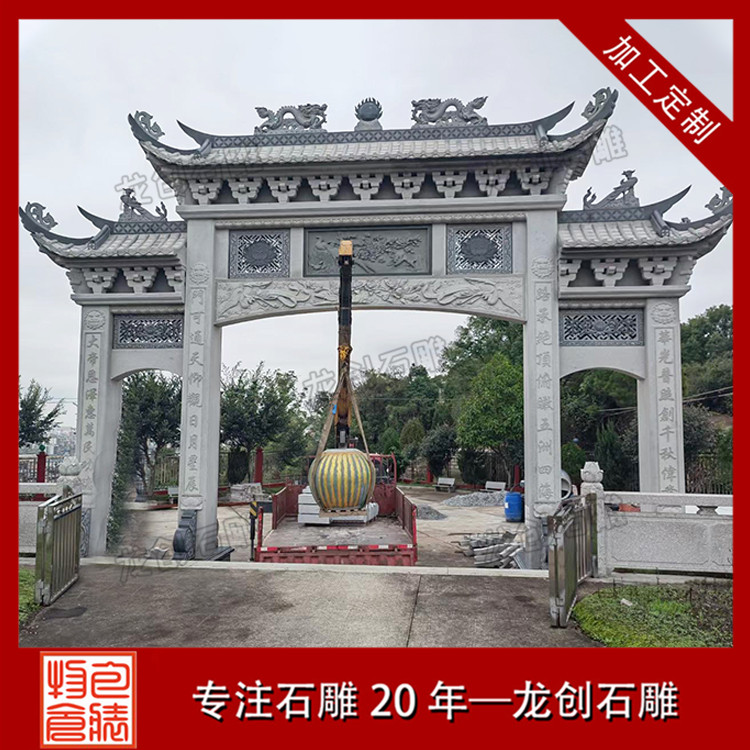 石雕山門作為寺廟的重要入口,其設(shè)計(jì)和制作都非常講究。首先,山門的造型要與寺廟的整體建筑風(fēng)格相協(xié)調(diào),既要體現(xiàn)出寺廟的莊嚴(yán)肅穆,又要彰顯出寺廟的獨(dú)特韻味。其次,石雕山門的雕刻工藝要求非常高,既要表現(xiàn)出線條的流暢美感,又要彰顯出雕刻技法的高超。最后,石雕山門的顏色也是非常重要的,通常選用深色系的石材,以突顯出寺廟的神秘色彩。