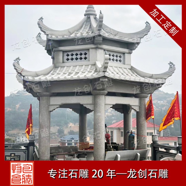 綜上所述,石雕涼亭選擇雙層設(shè)計(jì)是出于空間與容量、功能與實(shí)用性、美觀與文化內(nèi)涵以及適用性與環(huán)境融合等多方面的考慮。這種設(shè)計(jì)不僅提升了涼亭的實(shí)用性和美觀性,還使其更好地融入了周圍環(huán)境,成為園林景觀中重要的一部分。