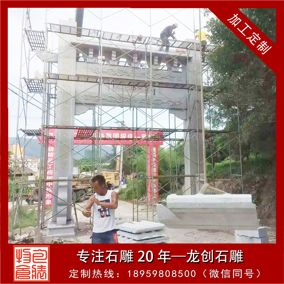 福建長樂石雕山門牌坊制作安裝