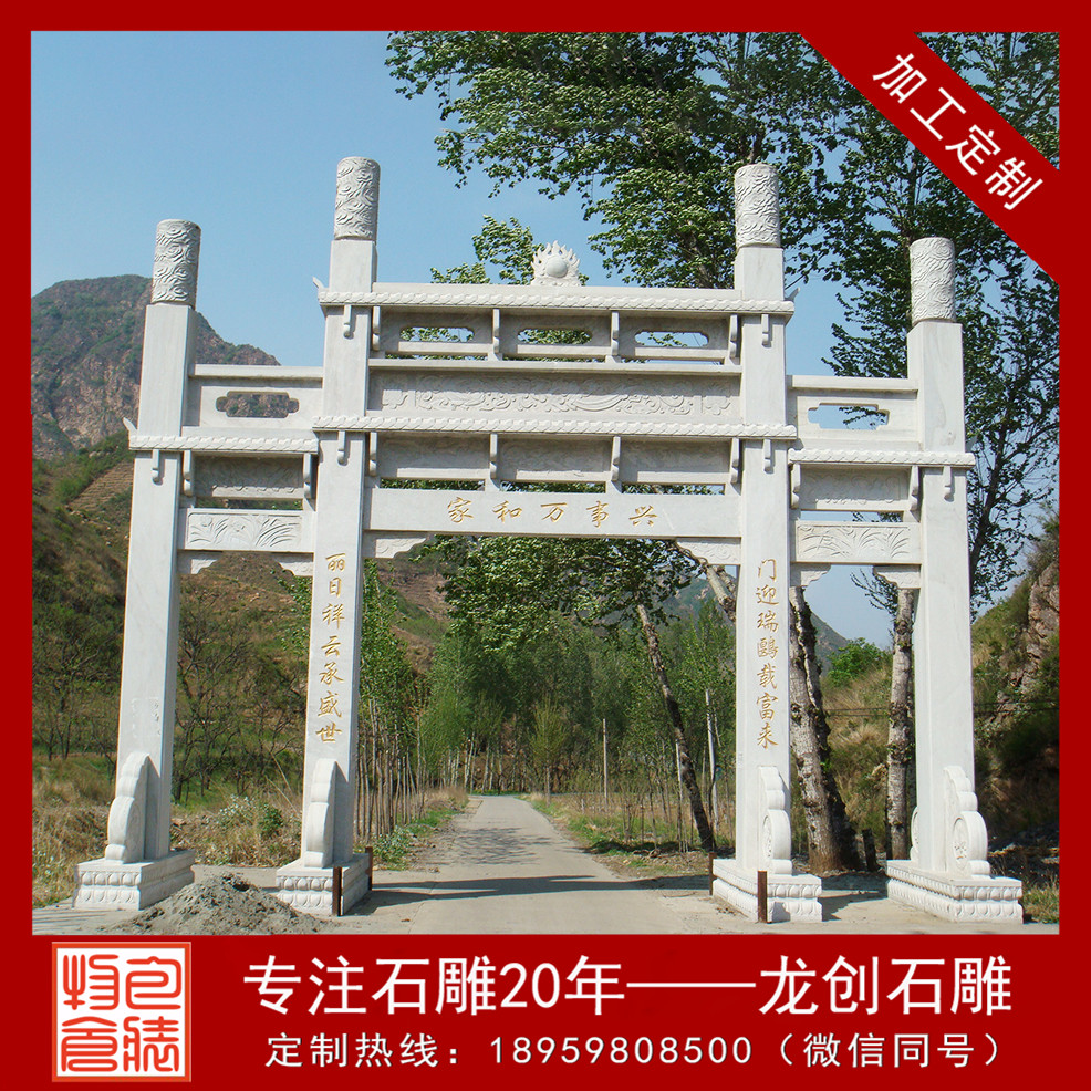 三門石雕牌坊,青石石雕牌樓廠家龍創(chuàng)石雕期待您的來電!