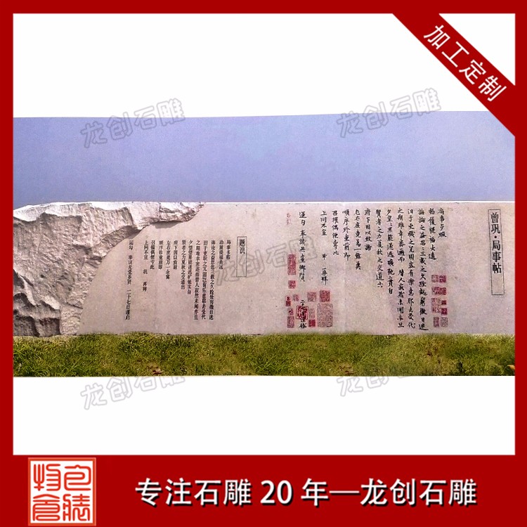 校園浮雕文化墻浮雕壁畫的建設(shè)一般分為幾個步驟,具體如下:1、校園環(huán)境考察、測量;2、整體定調(diào),相關(guān)人員對具體文案的溝通、討論、認可;3、校園文化浮雕的設(shè)計、修改、定稿;4、校園文化浮雕的制作、運輸、安裝;5、校園文化浮雕整體環(huán)境的調(diào)整和效果的處理;6、校園文化浮雕的驗收及完成。戶外景墻浮雕常用石材大多為花崗巖。