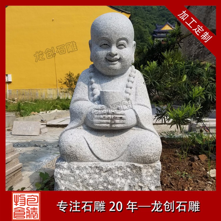 石雕小沙彌是從小就進(jìn)入寺院修煉佛法的孩子,俗稱小和尚。小和尚憨態(tài)可愛,在修習(xí)佛法的日常生活中,無憂無慮、懵懂、趣味的生活形態(tài)被人們以石雕的形式記錄下來,讓人們感受到小孩子的無邪與活潑。我們龍創(chuàng)石雕雕刻出來的石雕小沙彌可愛呆萌的形象而逗人一笑。