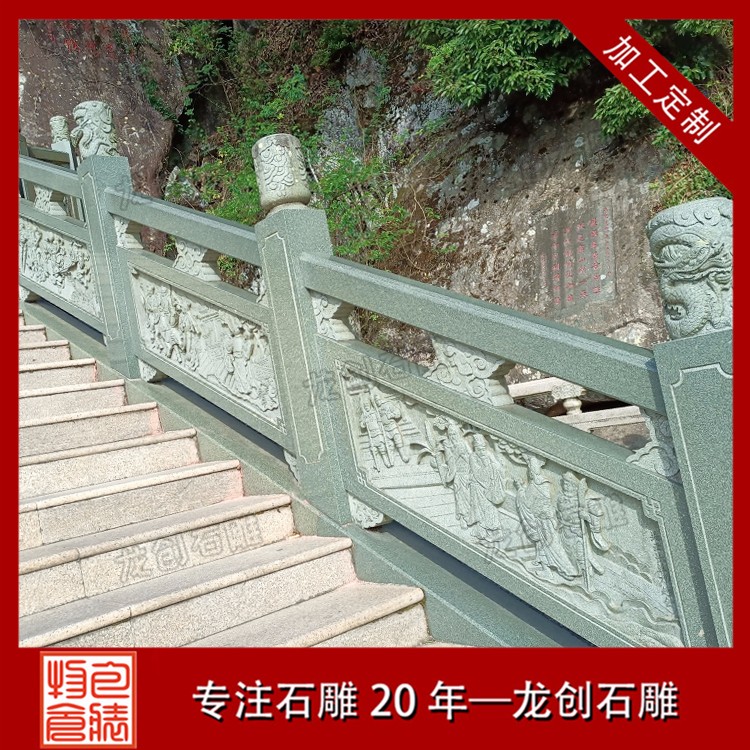 石材浮雕欄桿雕刻圖案樣式大全中可以了解浮雕欄桿的各種雕刻題材,現在雕刻也都會有很多時代人物故事主題。如今都需要有激勵性,在雕刻上會選擇一些先鋒人物故事以及時代發展故事等作為雕刻主題,雕刻工藝精細,能夠有非常好的細節展示,起到了一定的宣傳應用,更具好的文化氛圍。