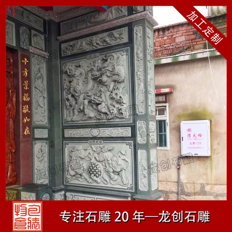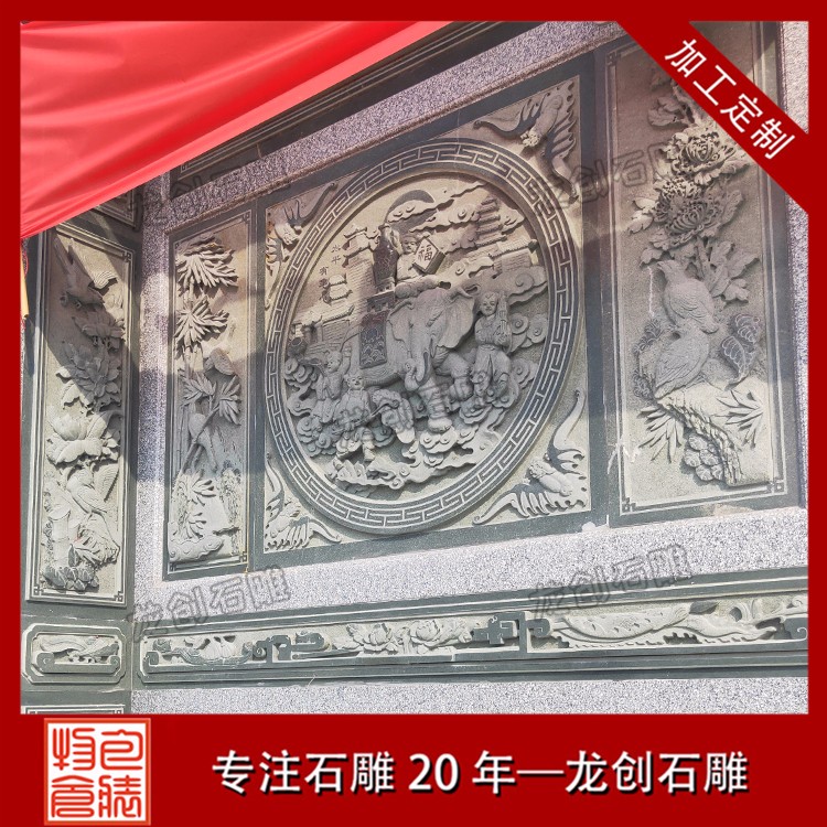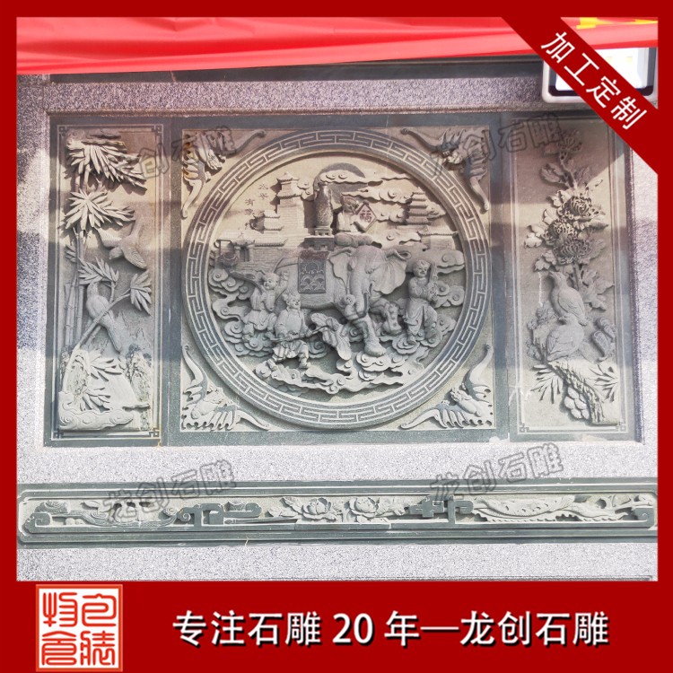 石材浮雕加工定制除了墻體浮雕壁畫雕刻外,還常集中在墻體的基座、墻身、墻檐、墻帽等處,無(wú)論是院內(nèi)的院墻、墻頂?shù)呐畠簤€是大門旁的翼墻我們都能看到。體基座一般都由磚砌筑成須彌座樣式,而為了防水、美觀,也經(jīng)常由石材筑成。基座常雕出虎牙形、卷草形圖案。墻身、墻檐、墻帽等處則是雕刻較多的地方,如采用多層浮雕、鏤空雕雕出場(chǎng)景深遠(yuǎn)的美麗景色、戲文故事等,墻帽下檐雕出如連珠混、卷草彎等多種裝飾浮雕壁畫圖案。