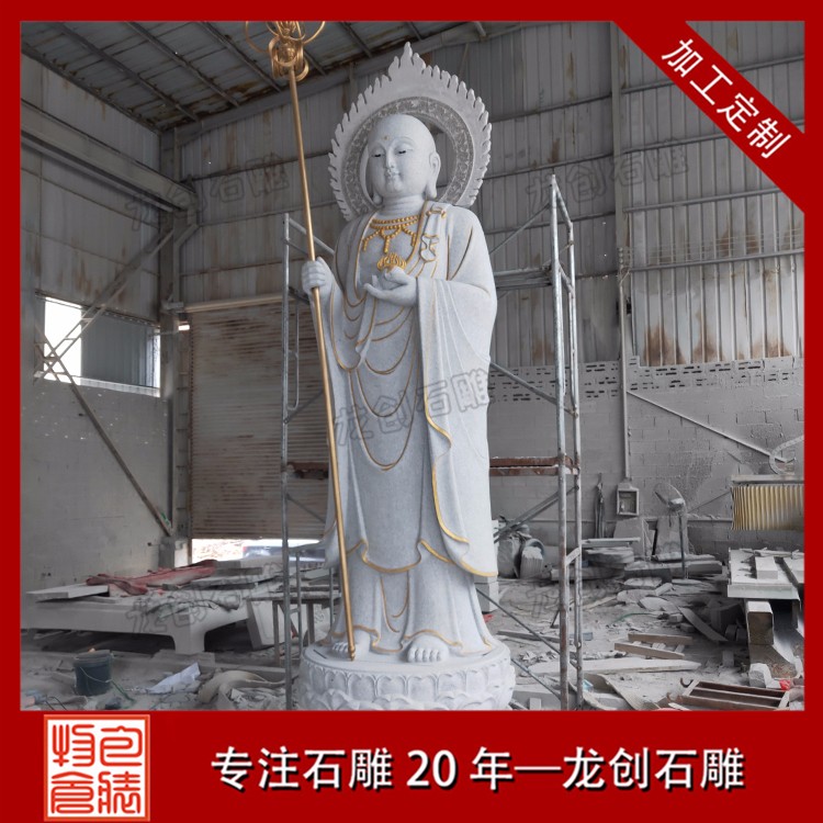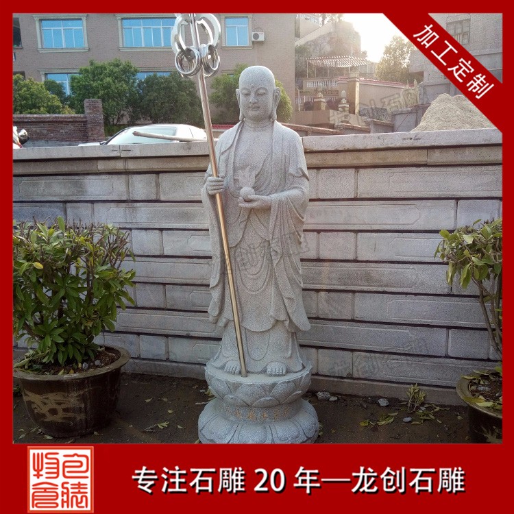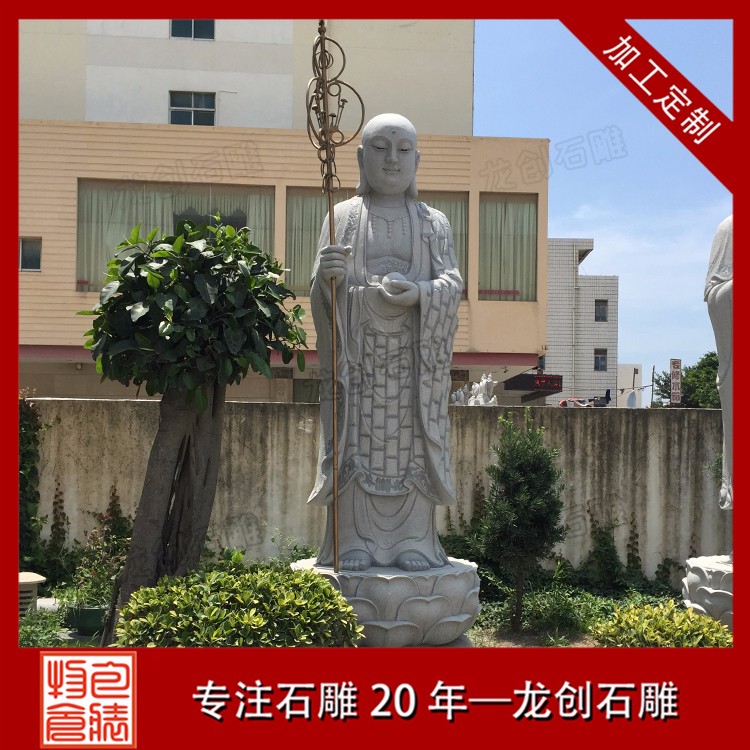 石雕地藏王菩薩圖片形象一般菩薩為頭戴寶冠、身披天衣、瓔珞裝飾的天人相。而地藏菩薩則多為光頭或是頭戴毗盧冠,身披袈裟的出家人之相。一手持錫杖,一手持蓮花,或是手持幡幢、寶珠等。石雕地藏王菩薩價格會根據(jù)材質(zhì)、尺寸和雕刻工藝的變化而變化,具體的價格多少錢,歡迎來電咨詢。