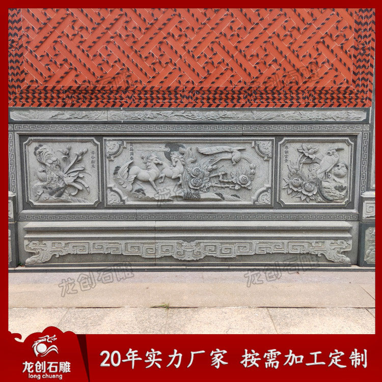 在石材浮雕的創作中,雕刻工藝很講究,為展現細膩的形象,雕刻手法的要求比較高,浮雕的藝術題材內容比較廣泛,一般都是以人物、動物、花鳥為主。定做各種石雕浮雕,一般都是以設計圖紙先,才能很好的雕刻出來客戶所想要的東西。精選石浮雕廠家,選惠安龍創石雕。