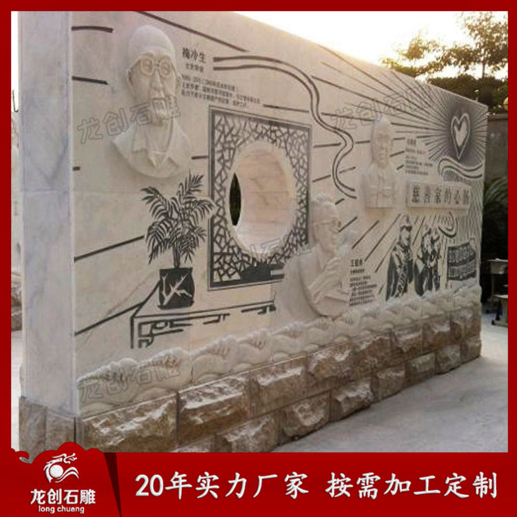 惠安龍創石雕工藝有限公司有20多年生產雕刻浮雕壁畫的經驗,長期生產加工各式材料的浮雕、寺廟浮雕、景點浮雕、校園文化墻、別墅外墻浮雕等,公司良好的管理團隊和石材專業技術人員秉承“顧客至上,銳意進取”的經營理念,堅持“客戶第1”“誠信+質量”的原則為廣大客戶提供優質的服務。