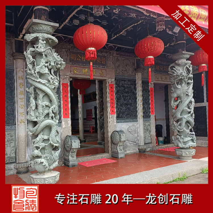 福建是著名的石雕之鄉(xiāng),歷史上有著悠久的石雕傳統(tǒng)。在福建石雕中,盤龍柱是一種常見的石雕藝術(shù)品。這種石雕龍柱設(shè)計的靈感來自于中國傳統(tǒng)的神話傳說中的盤龍,通常由雕刻家得到創(chuàng)意并且花費大量時間制作。