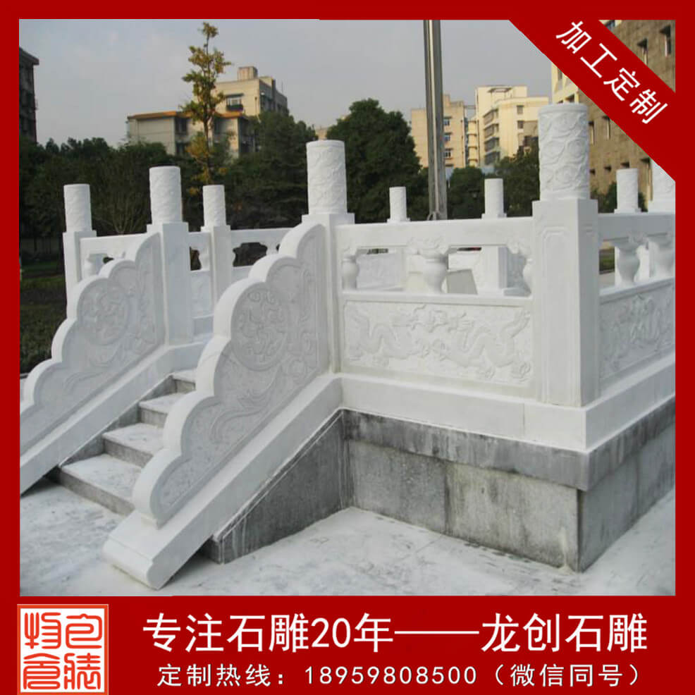 石雕欄桿一般出現(xiàn)在古建筑大殿周圍、橋面、路面上,起到維護行人安全外,石雕欄桿還可裝修環(huán)境,又能豐富人們的活,熏陶人的情趣,給人以美的享受。漢白玉石雕欄桿的構成石雕欄桿有柱頭、立柱、扶手、花托、欄板、地鋪幾部分組成。透空的帶花格或圖畫的實心欄桿,也有實心的欄板部分透空或悉數(shù)不透空的欄桿。