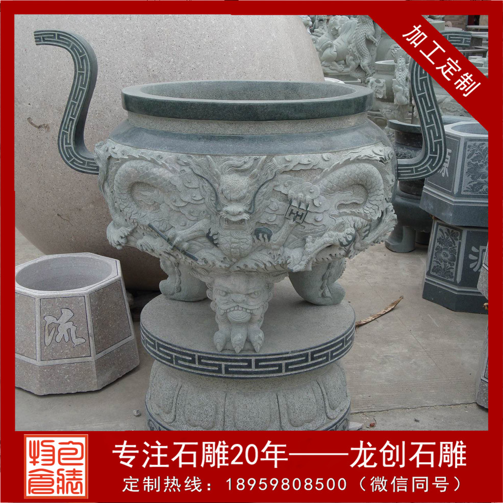 龍創石雕關于寺院香爐、大型香爐、石雕香爐的款式是應有盡有,客戶案例更是不在其數,如果你有需要,可來圖定做,或者我們提供款式給您參考,又或者隨時歡迎您來我司考察!