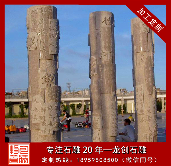 石雕文化柱也被稱為石雕圖騰柱或者文化景觀柱以及石頭文化柱等,當石雕文化柱以單體形式出現時一般是作為城市廣場的主雕而放置在廣場的視覺中心位置,尺度高大醒目,空間領域覆蓋整個廣場。下面由石雕文化柱廠家-惠安龍創石雕工藝有限公司對石雕文化柱圖片及文化柱的作用做個介紹。