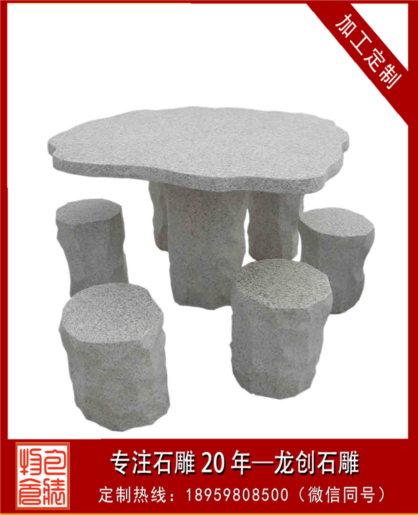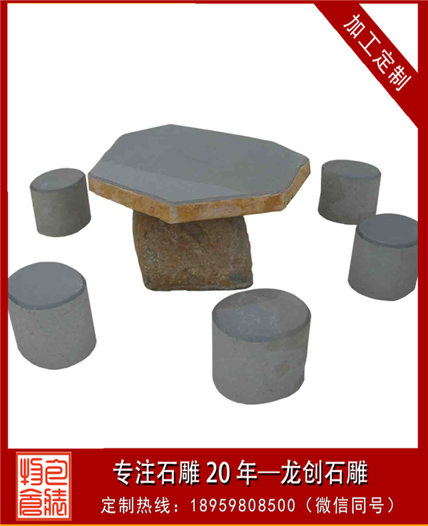 利用石材的石桌椅雖然堅硬,但是可塑性強,不易損壞,可制作造型多樣的石桌椅。最為簡單的石桌椅有由簡單修飾的圓柱坐凳與圓板組成的一組石桌椅,還有用幾塊石板組成的石靠背椅、長椅或者單椅等。還可以做進(jìn)一步雕塑,可江坐凳打磨成葫蘆形或者雕塑各種花紋,還可將坐凳雕塑成動物坐凳、手坐凳等其他藝術(shù)造型。靠背椅還可仿沙發(fā)形狀來進(jìn)行雕塑,可長方形也可做成弧形。長椅不單可做直線,也可做曲線,整石打磨或者把兩側(cè)做成動物造型。而單椅能雕刻成各種各樣動物造型,還能根據(jù)需要來選擇大小。