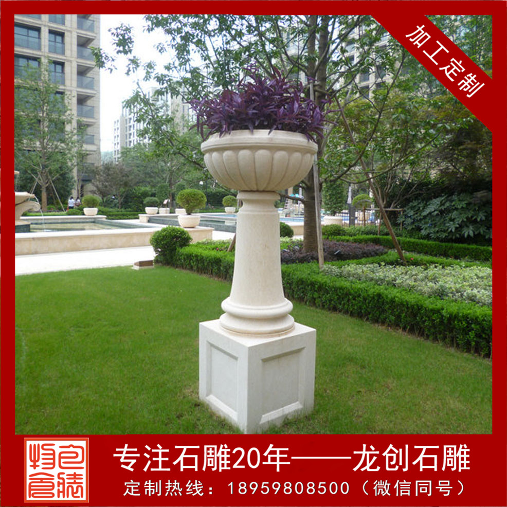 被精雕細(xì)琢而成的天然石雕花盆。形態(tài)逼真,許許如生。適用于小區(qū),廣場(chǎng),園林,酒店,學(xué)校,戶外園林景觀工程等場(chǎng)所。這些花缽靈活多樣,隨處可用,尤其對(duì)于城鄉(xiāng)建筑比較密集和其他一些難于綠化地區(qū)的美化,有著特殊的意義。美化環(huán)境時(shí),可根據(jù)缽、盆樣式、大小的不同,進(jìn)行多種多樣的藝術(shù)組合。組合的形式可以是幾何式、自然式、混合式、集中布置、散置等,具體布局形式要由美化地點(diǎn)的具體情況決定。在較寬敞的地方,如廠前區(qū)、廣場(chǎng)、大型建筑門(mén)前、道路交叉口、停車(chē)場(chǎng)等處,小區(qū)石雕花盆可布置為樣式多變、五彩繽紛的小花壇,在商店、住宅的門(mén)前可隨機(jī)點(diǎn)綴一二。石雕噴泉花缽制作設(shè)計(jì)多種多樣,可以是圓形、半圓形、方形、多邊形等,立面可以分單層、多層等。設(shè)計(jì)的依據(jù)是要配合應(yīng)用地點(diǎn)的環(huán)境特點(diǎn)。