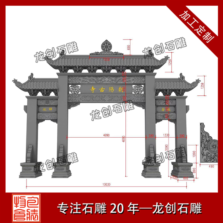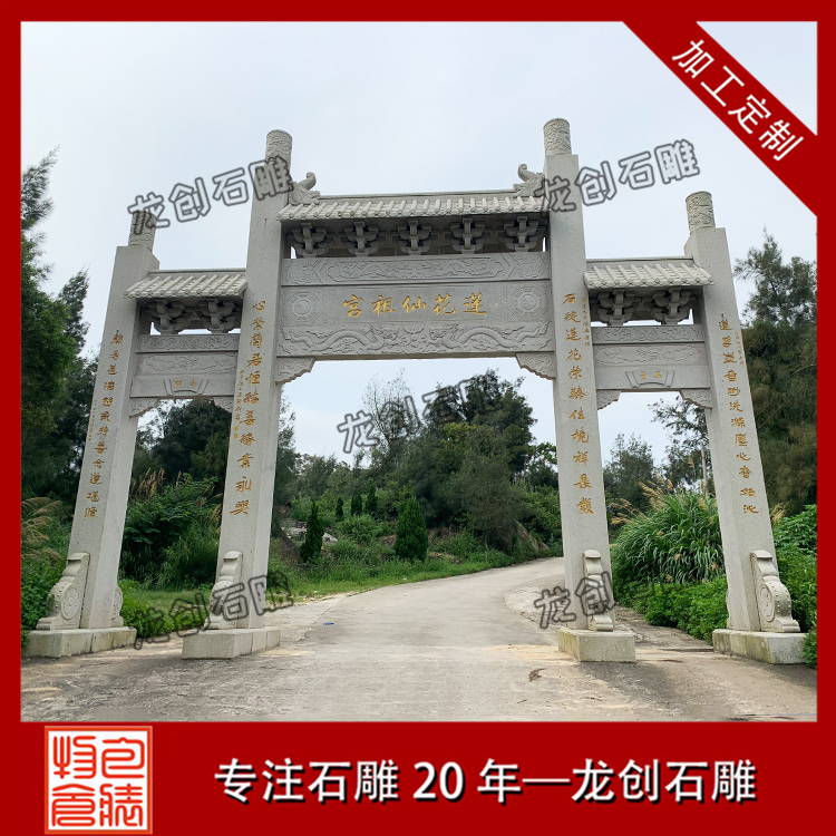花崗巖石牌樓廠(chǎng)家龍創(chuàng)石雕生產(chǎn)的石牌樓古樸典雅、新穎美觀(guān),無(wú)論人物或動(dòng)物都栩栩如生,成為提升形象、營(yíng)造古典文化的一大特色。我廠(chǎng)專(zhuān)業(yè)制作設(shè)計(jì)各種石牌樓,青石牌樓定制,在石雕行業(yè)中有著專(zhuān)業(yè)的技術(shù)團(tuán)隊(duì),可以為每一個(gè)地方設(shè)計(jì)出具有他們當(dāng)?shù)匚幕氖茦?,龍?chuàng)石雕全體員工熱誠(chéng)歡迎您前來(lái)參觀(guān)。