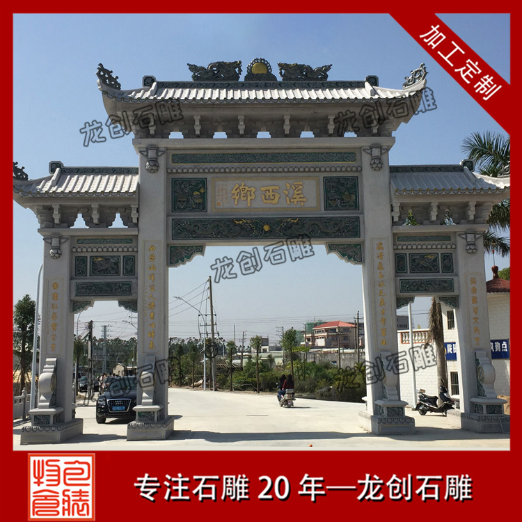 村口石牌樓設(shè)計制作修建很重要,可以集中展示農(nóng)村的建設(shè)風(fēng)采,成為新農(nóng)村建設(shè)成功的文化窗口所在。在石牌樓的建造前要先對農(nóng)村的區(qū)域環(huán)境有一定了解,看看牌樓本身的建造和設(shè)計情況,尤其是要考慮到農(nóng)村入口處的空間區(qū)域情況,這對村莊入口牌坊的規(guī)格尺寸都有很大影響,空間比較小的話以單門牌樓為主,若是空間比較大三門牌樓和五門牌樓也都是非常不錯的選擇。同時也要對農(nóng)村的整體風(fēng)俗和文化都有所了解,影響到了牌樓上的雕刻圖案設(shè)計,對新農(nóng)村牌樓的整體構(gòu)造等也都會有影響。